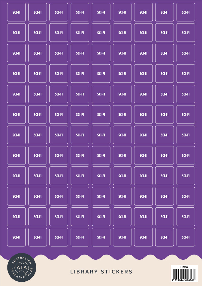 At 19mm x 19mm, these stickers are crafted to be immediately noticeable on the spines of books. Their deep purple colour is reminiscent of the vastness of space and the mysteries of the future, with 'SCI-FI' featured in white lettering for standout visibility. Proudly designed and printed in Australia, these stickers are robust and made to withstand frequent use.