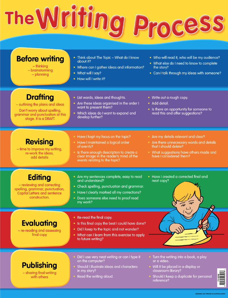 Laminated Writing Process educational chart. Suitable for whiteboard pen. Chart measures 42cm x 55cm.